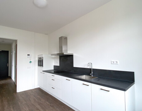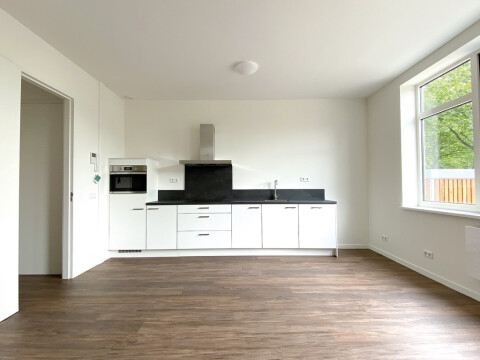 Entree vanuit de algemene ruimte in de gang, hieruit is de slaapkamer, de stookruimte, maar ook de toilet en badkamer te betreden. De badkamer is voorzien van een douchecabine, een wastafel met spiegel, een handdoekenradiator en wasmachineaansluiting. De woonkamer is door de ramen erg licht en beschikt over een open keuken, voorzien van een combi-oven magnetron, een koelkast met vriesvak, een 4-pits inductie kookplaat met RVS afzuigkap, een gootsteen met luxe mengkraan, een vaatwasmachine en voldoende opbergruimte.
