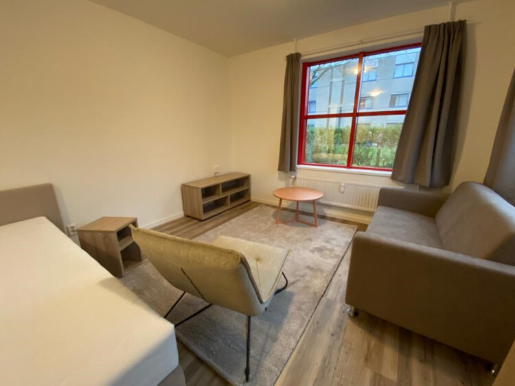 De studio wordt aangeboden inclusief meubilair, witgoed, eigen parkeerplaats en beschikt over een gemeenschappelijk afsluitbare fietsenstalling en een gemeenschappelijke tuin.