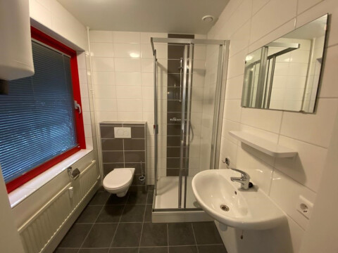 Vanuit de woonkamer is de badkamer te betreden welk is voorzien van een toilet, inloop douche, wastafel met mengkraan, wasmachine en handdoekenradiator.